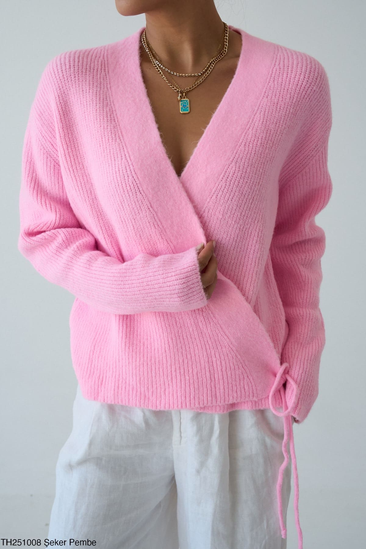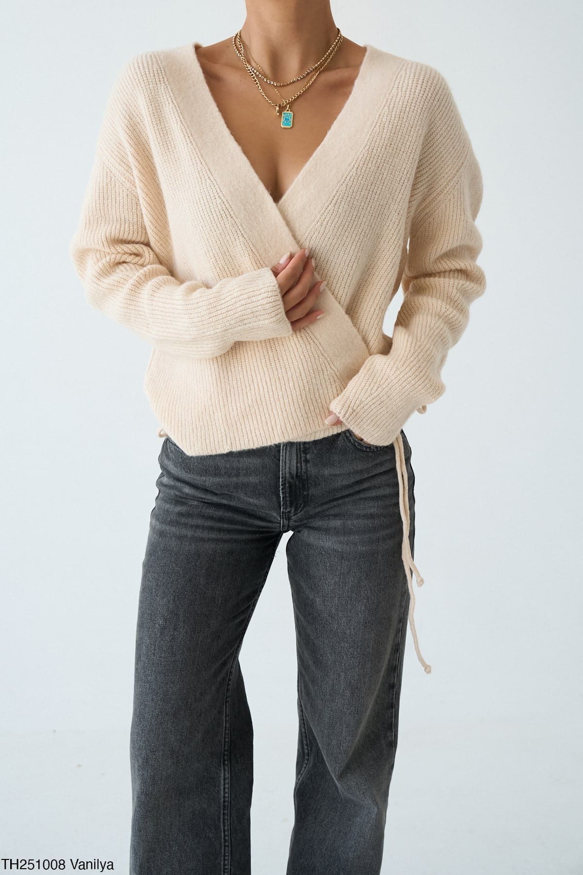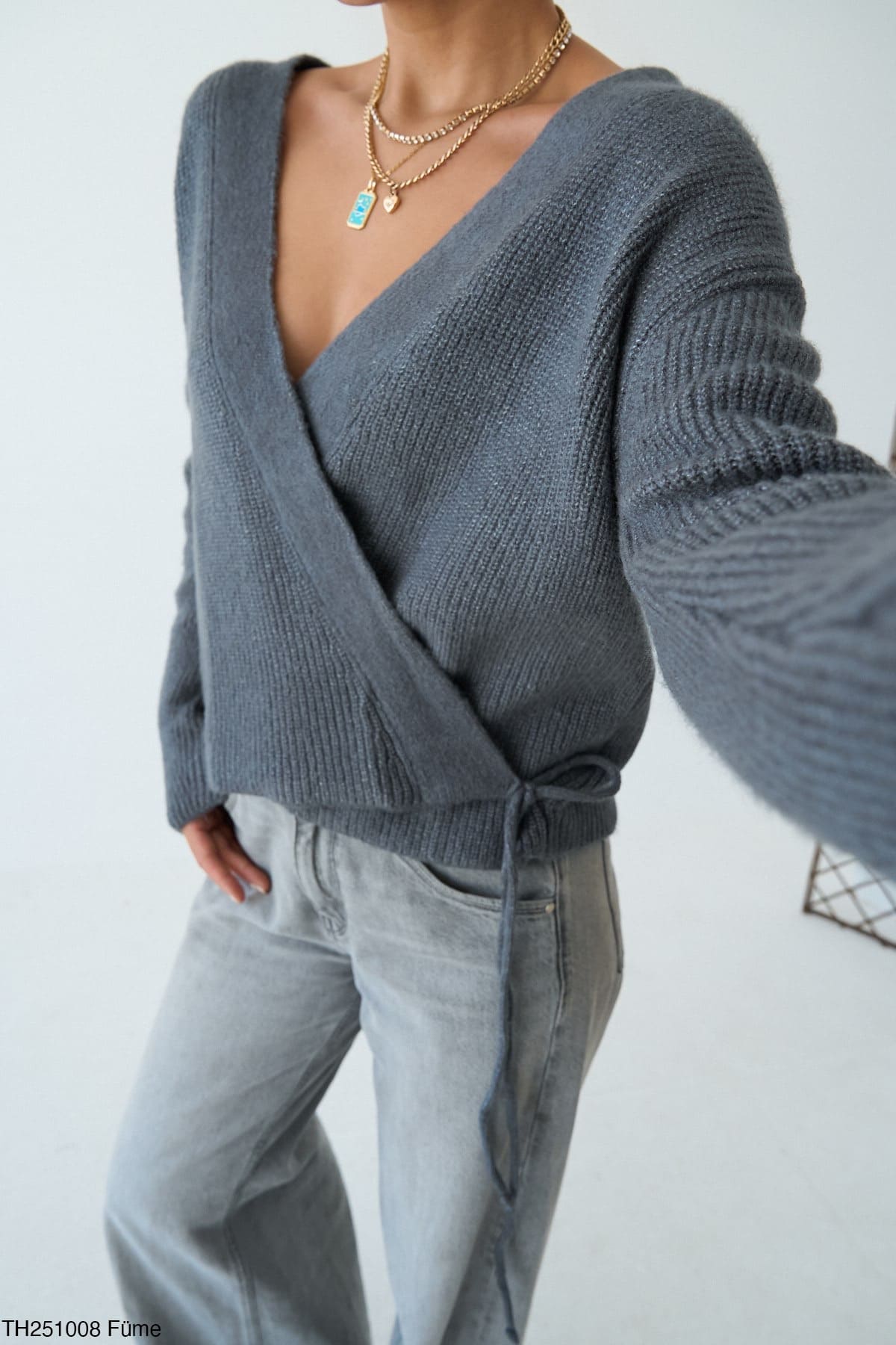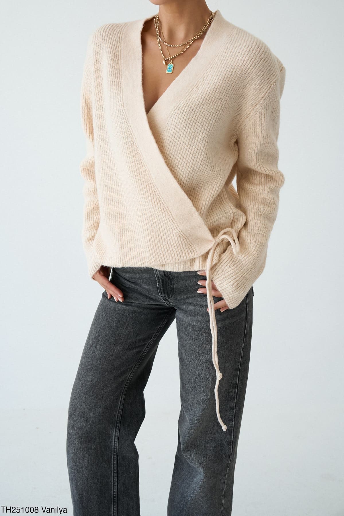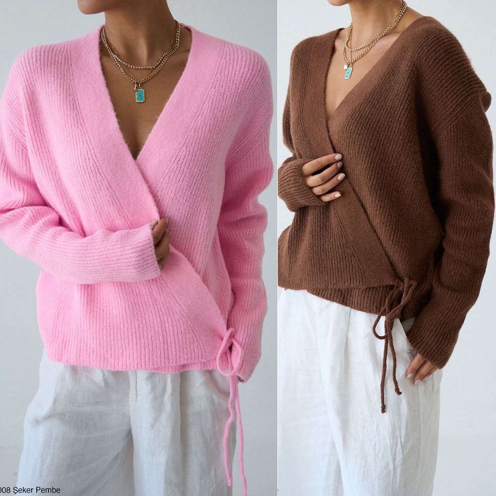 - Крій: вільний, з запахом і зав’язками збоку