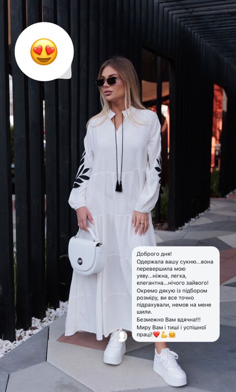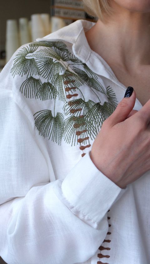 - Блуза: оверсайз, виконана із 100% льону, має вишивку ручної роботи