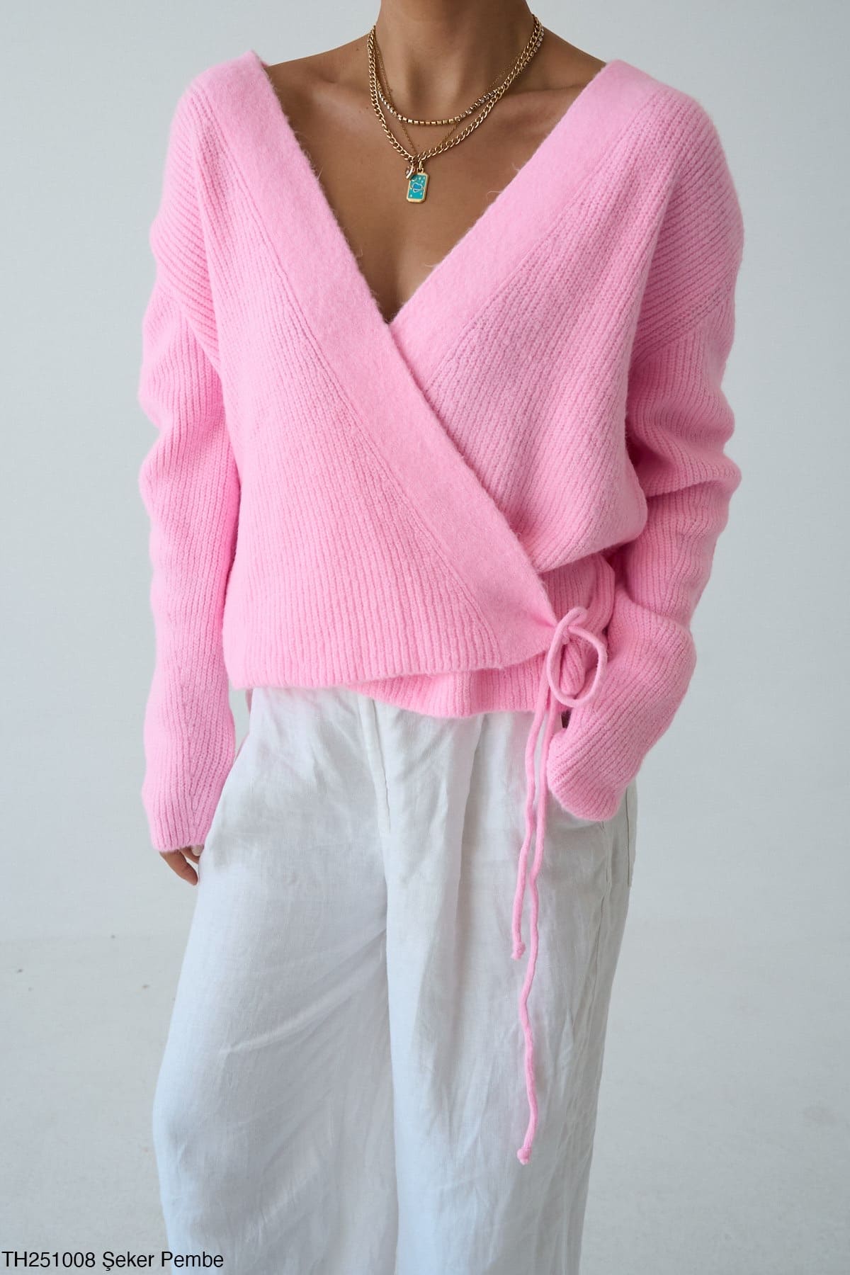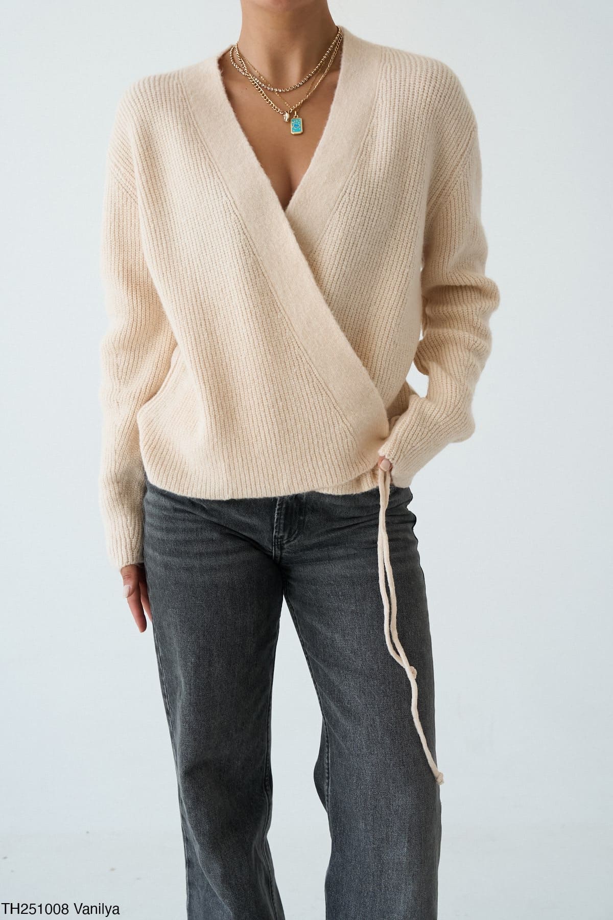 - Крій: вільний, з запахом і зав’язками збоку